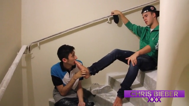 Kiffeur lèche les pieds de son pote dans la cage d’escalier