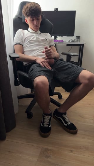 Curly twink guy jerked off after college and cum