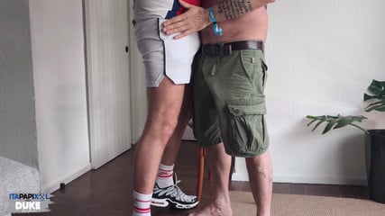 Soccer cum slut takes the uncut big cock from Italian hung mature Daddy
