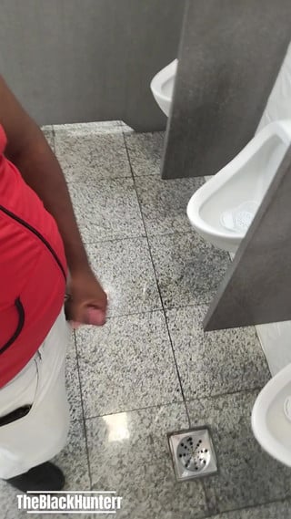 Huge, very hard penis in the men's bathroom.