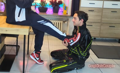 Sniffs smelly sneakers and gets dick in the ass
