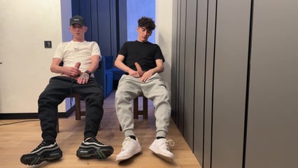 Two guys jerking off together