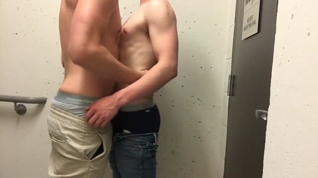 Danny is creampied by Jake in public stairwell