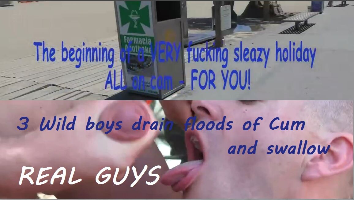 HYB - 3 Wild boys drain floods of Cum and swallow REAL GUYS