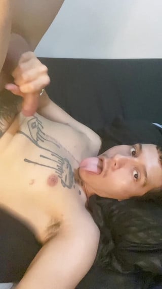 Femboy is swallowing his own cum